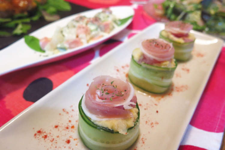 きゅうりリングの一口生ハムポテトサラダ レシピ 作り方 By Matscafe クックパッド 簡単おいしいみんなのレシピが361万品